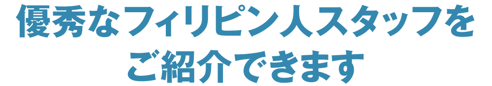 フィリピン人材開発機構株式会社では、企業様が共通して抱えておられる人材不足の悩みにお応えするべく、優秀で且つコストのかからないフィリピン人スタッフを数多く抱えております。